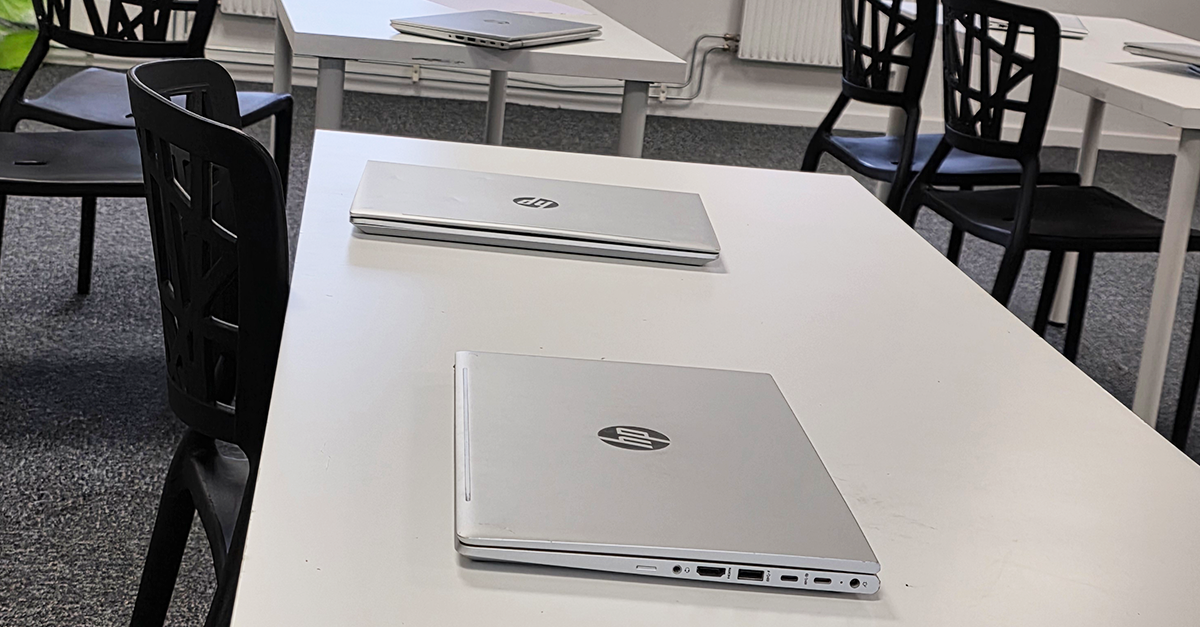 Zu Beginn der Ausbildung erhält jede:r Schüler:in einen HP-Laptop von der Schule; nach drei Jahren kann dieser für umgerechnet 90 € gekauft werden.