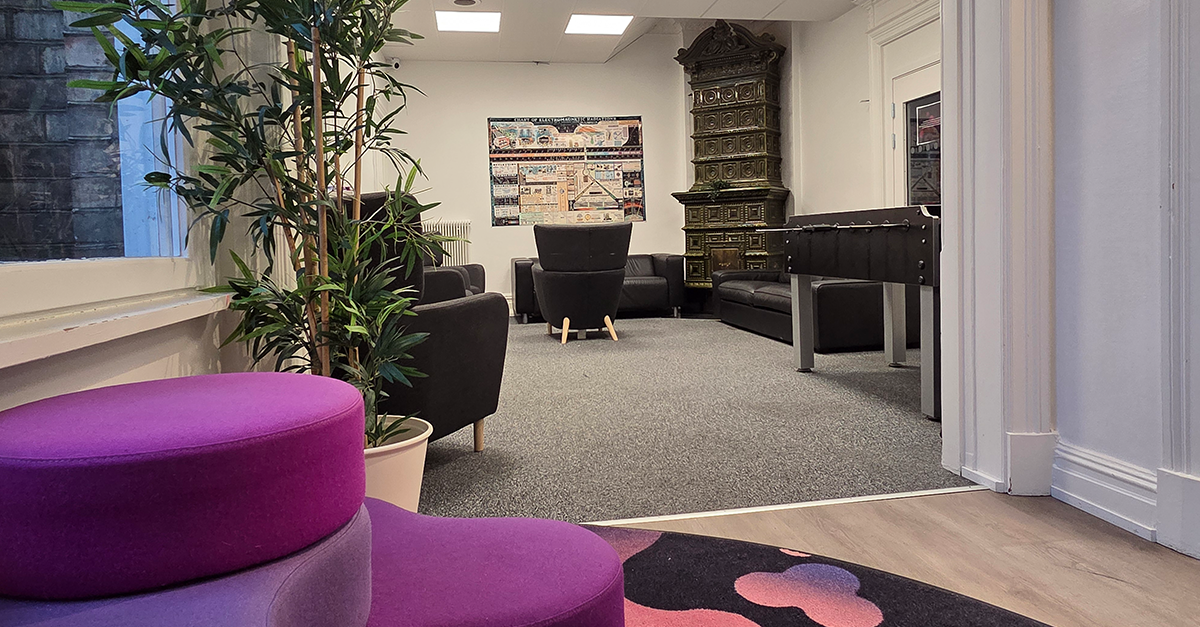 Die Schule befindet sich oberhalb der Redaktion der Lokalzeitung Kristianstadsbladet im dritten und vierten Stock.